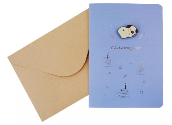 Открытка со значком Мопсик С Днем рождения! (15х11) (конверт) (картон, металл) (12-08599-954) Подробнее