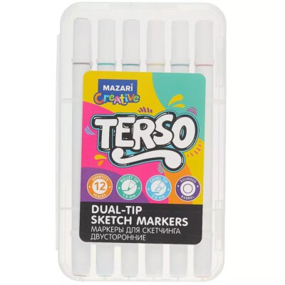 Маркеры для скетчинга 12цв "TERSO" Пейзаж, двусторонние, пулевидный/клиновидный наконечники 1-3мм, пласт.уп. Подробнее