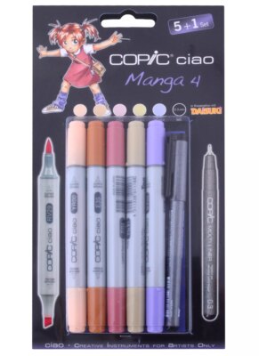 Набор маркеров Copic Ciao 'Manga 4' 5 штук + мультилинер 0.3мм в блистереЦвета в наборе: YR00, E35, E04, YG91, BV02Легендарные маркеры из Японии —