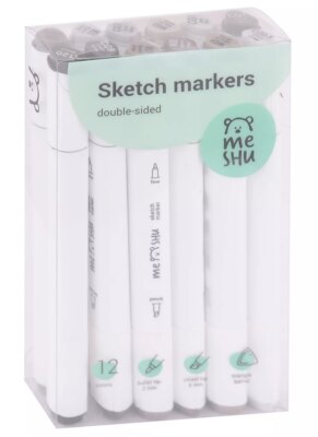 Маркеры для скетчинга 12цв двусторонние, серые цвета, MESHU Подробнее