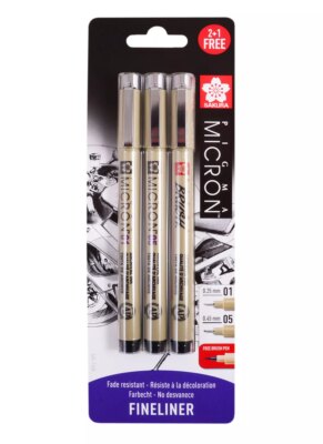 Капиллярные ручки черные 03шт "Pigma Micron" (0.25мм, 0.45мм + Ручка Pigma Brush), Sakura Подробнее