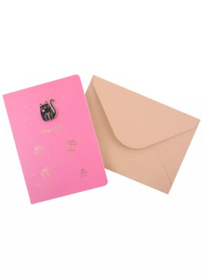 Открытка со значком Котик с подарком Поздравляю! (15х11) (конверт) (картон, металл) (12-08599-949) Подробнее