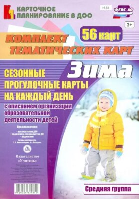 Комплект содержит 56 карт с сезонными зимними прогулками на каждый день для организации образовательной деятельности с детьми средней группы.