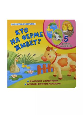Вашему вниманию предлагается Кто на ферме живет? Знакомься с животными. Вставляй фигурки в кармашек. 5 фигурок на ленточках Мирная Елена
