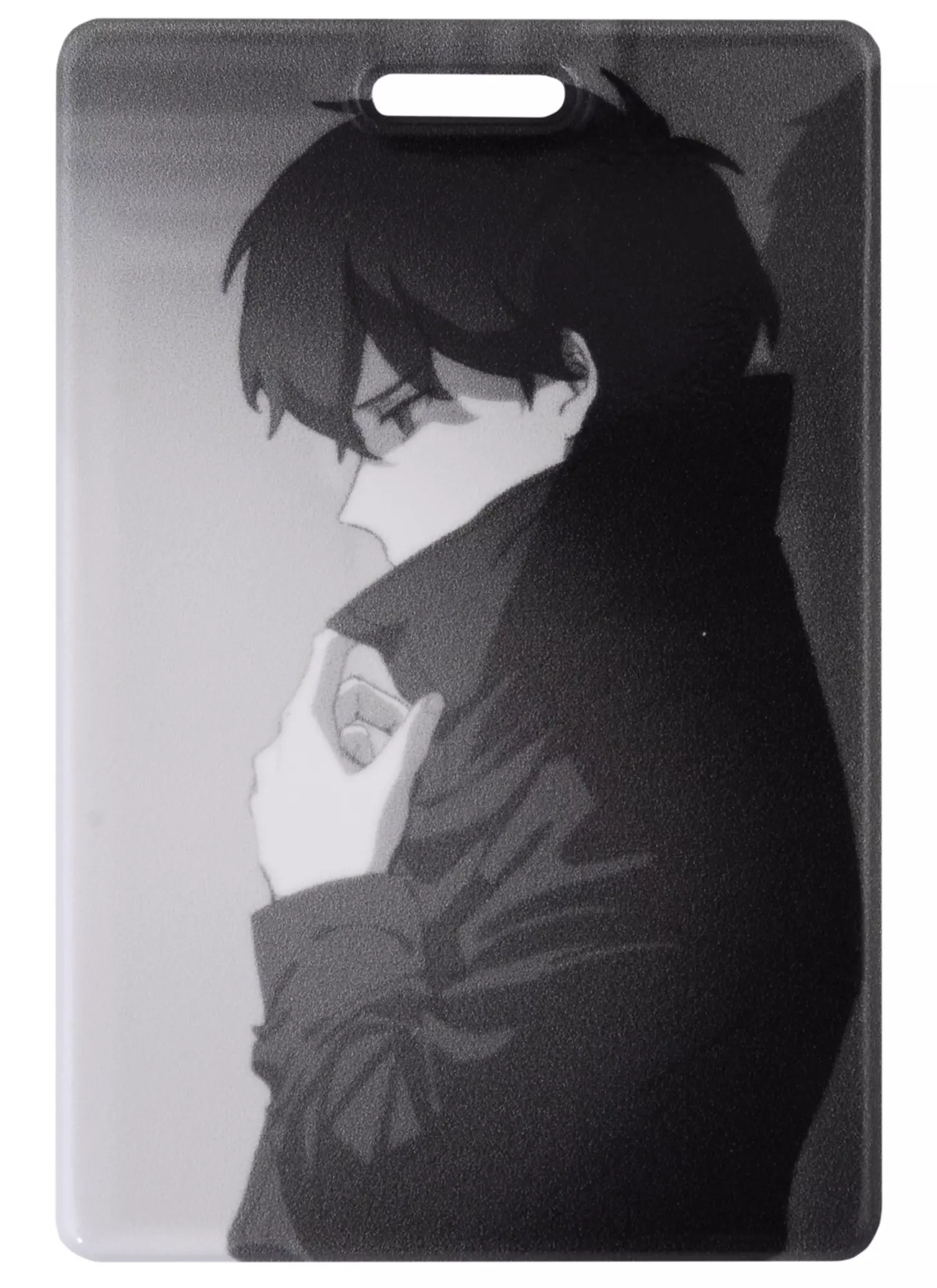 Чехол для карточек вертикальный Аниме Синтонимы Персонаж в плаще (ч/б) (Медина Мирай) (ДК2022-419)