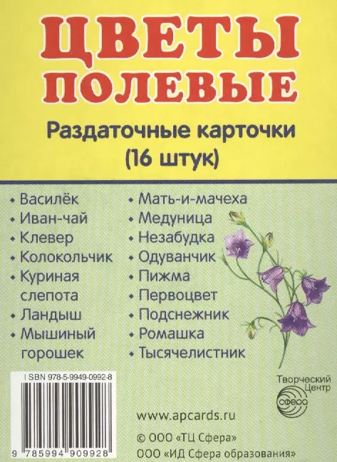 16 раздаточных карточек размером 63х87 мм для познавательного и речевого развития.На обороте каждой карточки — название цветов на русском и английском языках.