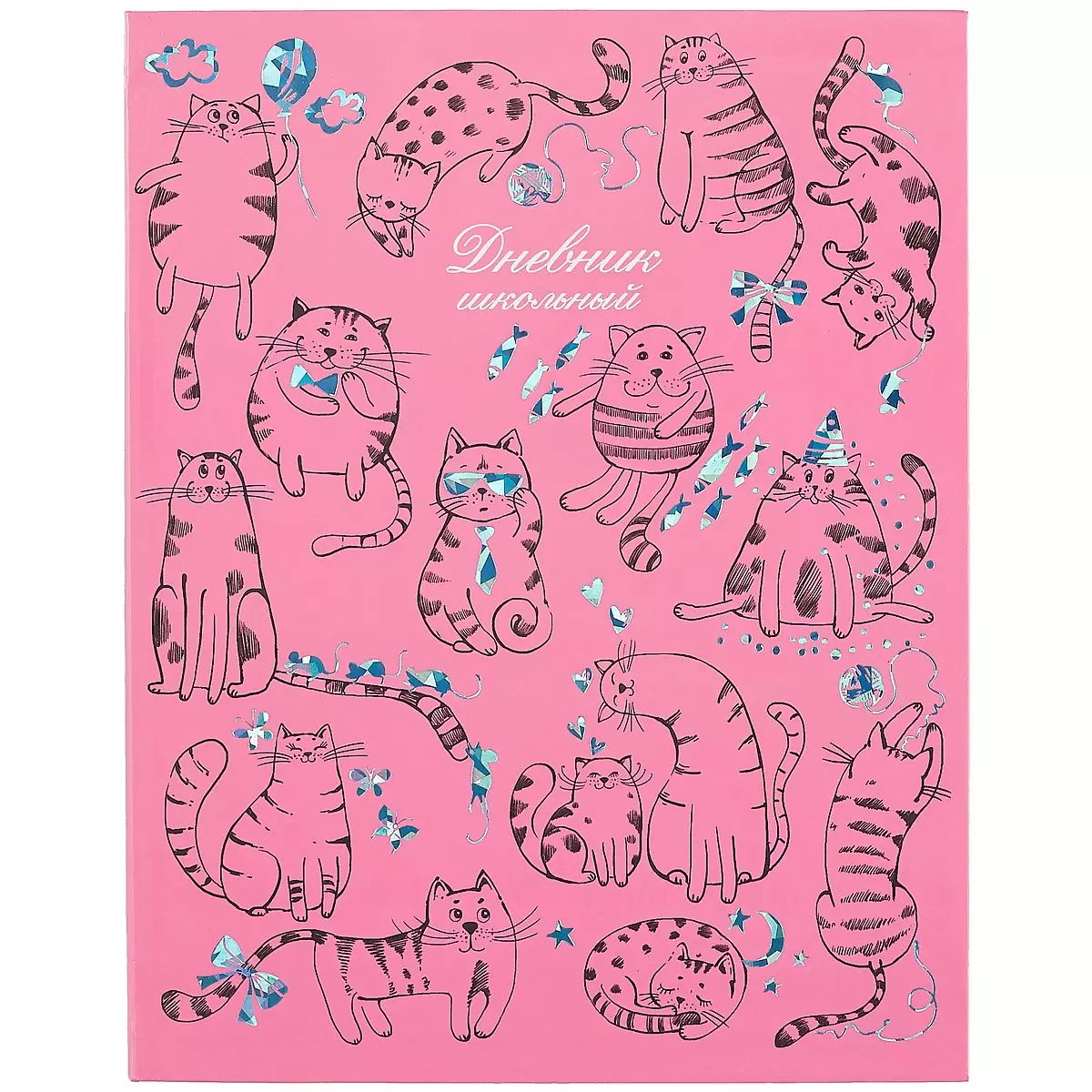 Дневник школьный арт. 49455 КОТЫ НА РОЗОВОМ / интегральный переплёт, А5+, 48 л., тиснение голографической фольгой, глянцевая ламинация, печать в одну краску, универсальная шпаргалка/