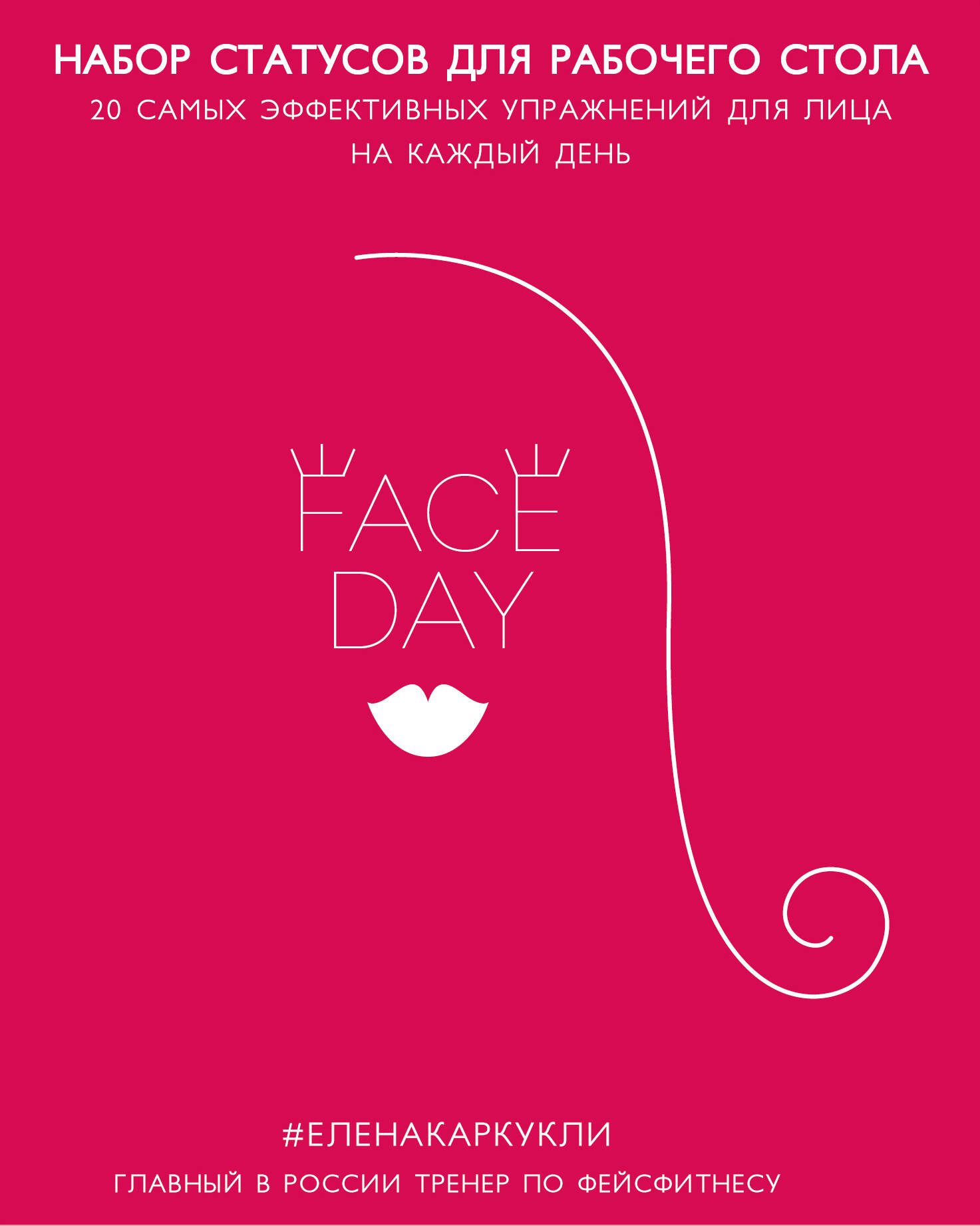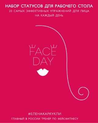 Елена Каркукли, автор книги "Faceday: Идеальное лицо за 10 минут в день", главный тренер по фейсфитнесу в России, создала уникальные статусы для рабочего стола, для дома и офиса, которые помогут быстро и правильно выполнить упражнение, вспомнить весь комплекс полностью и вдохновят на занятия в любую свободную минутку.