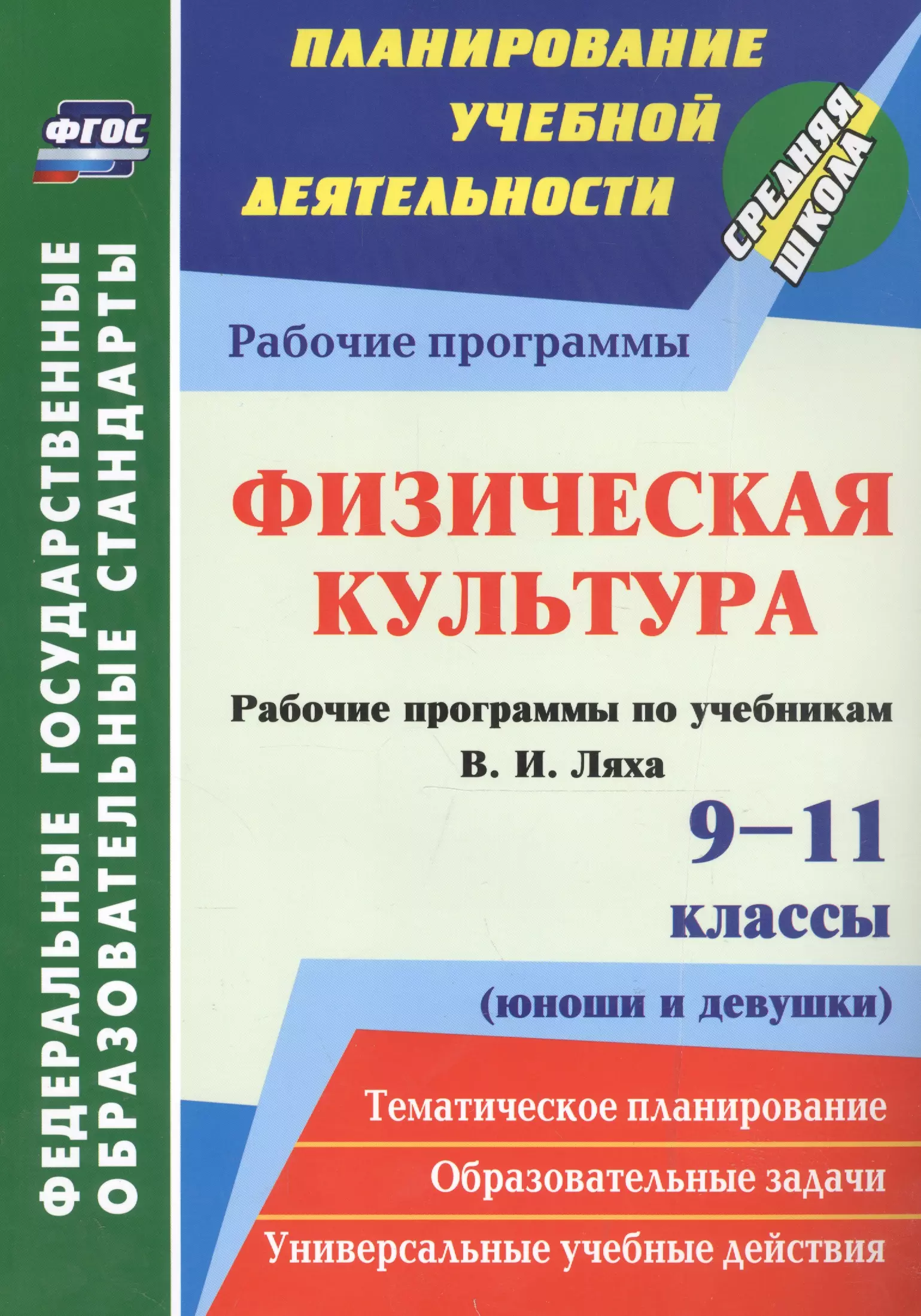 В пособии представлены рабочие программы по физической культуре для 9-11 классов (юношей и девушек), разработанные в соответствии с основными положениями федерального государственного образовательного стандарта среднего общего образования, Концепцией духовно-нравственного развития и воспитания личности гражданина России, планируемыми результатами среднего общего образования и требованиями Примерной образовательной программы, ориентированные на работу по учебникам "Физическая культура" В.И. Ляха (М.: Просвещение, 2014). Программа для каждого класса содержит пояснительную записку и развернутую таблично-графическую схему тематического планирования системы учебных занятий и педагогических средств, с помощью которых формируются универсальные учебные действия, достигаются прогнозируемые результаты освоения образовательной программы: личностные, метапредметные, предметные; учебно-методическое обеспечение. Предназначено руководителям методических объединений, учителям физической культуры.
