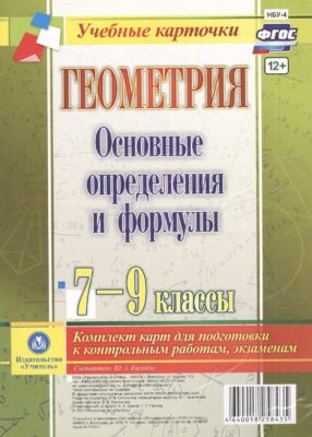 В данном комплекте карт рассматриваются основные темы курса геометрии 7-9 классов — планиметрии: треугольник, четырёхугольник, окружность, вписанная и описанная окружность, векторы, площадь фигуры, параллельные прямые..Комплект позволяет учителю математики организовать различные виды повторения материала на уроке: повторение в начале учебного года, текущее повторение всего, ранее пройденного; обобщающее и систематизирующее повторение законченных тем и разделов программы; заключительное повторение при окончании прохождения большого раздела программы или в конце учебного года..Карты также подходят для самостоятельной работы обучающихся: удобно готовиться к контрольным и проверочным работам, к экзаменам. Комплект может служить для школьников ориентиром оценки собственной теоретической базы. Предназначен учителям математики, репетиторам, полезен обучающимся.