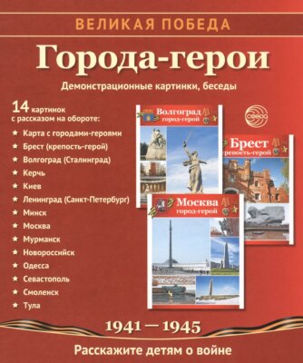 Комплект «Города-герои» посвящен героическому подвигу 12 городов и одной крепости бывшего СССР в годы Великой Отечественной войны (1941-1945).Лаконичные тексты картинок содержат:- описание подвига защитников города;- названия мест сражений, фамилии героев обороны и военачальников;- краткое описание событий войны, связанные с боями за город;- выводы о значении обороны города для победы нашей страны;- описание памятников, посвященных войне.Информация разбита на удобные для запоминания блоки. Знания даются сжато, но в достаточном для ребенка 6-14 лет объеме. Фотографии мемориальных комплексов и монументов помогут ребенку представить места исторических событий, ознакомят с другими городами и их достопримечательностями, сделают рассказ об обороне города образным и интересным. Картинки подходят для индивидуальной и групповой работы. Рекомендуем использовать все тематически связанные комплекты серии «Великая Победа».