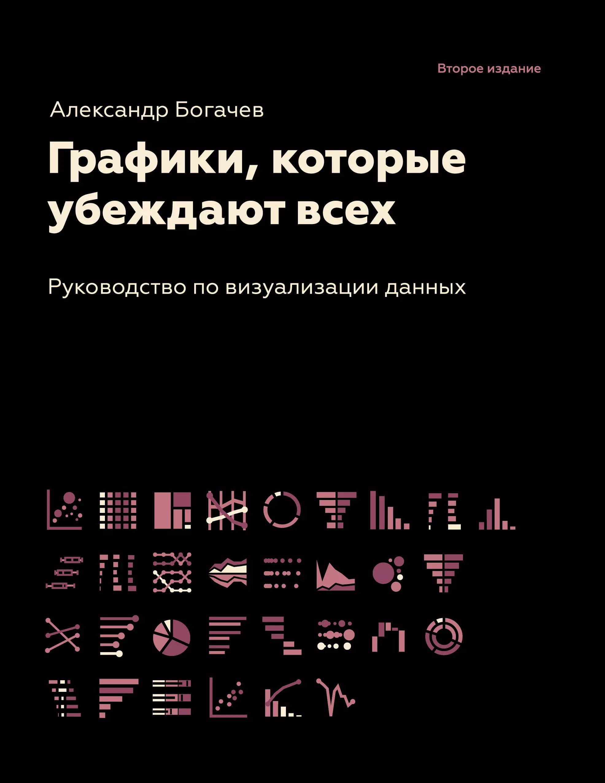 Первая книга об эффективном представлении данных от русскоязычного автора. Книга рассказывает, как подготовить данные к работе, как выбрать подходящий для своих данных график или диаграмму, как грамотно оформить график, чтобы он максимально доносил ваше сообщение, как распознать ситуацию, когда статистикой пытаются манипулировать. Александр Богачев — один из ведущих в стране специалистов по визуализации данных, инфографике и дата-журналистике. Работал ведущим дизайнером в Студии инфографики сайта РИА.ру, руководителем отдела дата-спецпроектов в РБК, сотрудничал как информационный дизайнер и руководитель проектов с крупнейшими российскими компаниями. Преподает визуализацию данных в Высшей школе экономики.