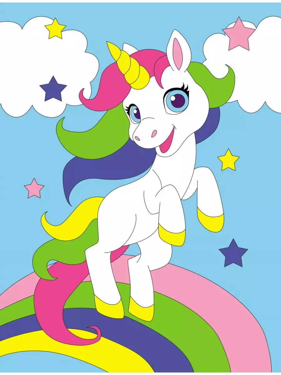 Вашему вниманию предлагается набор для детского творчества "Холст с красками "Радужный единорог". В состав набора входит холст 18х24 см с нанесенным контуром, 7 акриловых красок, кисть. Для детей с 3 лет.