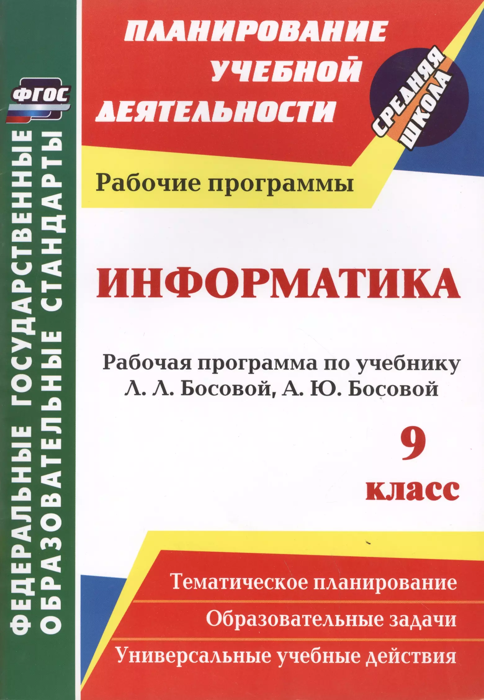 В пособии представлена рабочая программа по информатике для 9 класса, разработанная в соответствии с основными положениями федерального государственного образовательного стандарта основного общего образования, планируемыми результатами, требованиями Примерной основной образовательной программы ОУ и авторской программы Л. Л. Босовой, А. Ю. Босовой, ориентированная для работы по учебнику Л. Л. Босовой, А. Ю. Босовой. Программа содержит развернутое тематическое планирование системы уроков и педагогических средств, с помощью которых формируются универсальные учебные действия; требования к результатам освоения образовательной программы: личностные, метапредметные (регулятивные, познавательные, коммуникативные), предметные; учебно-методическое обеспечение. Предназначено учителям информатики, руководителям методических объединений.