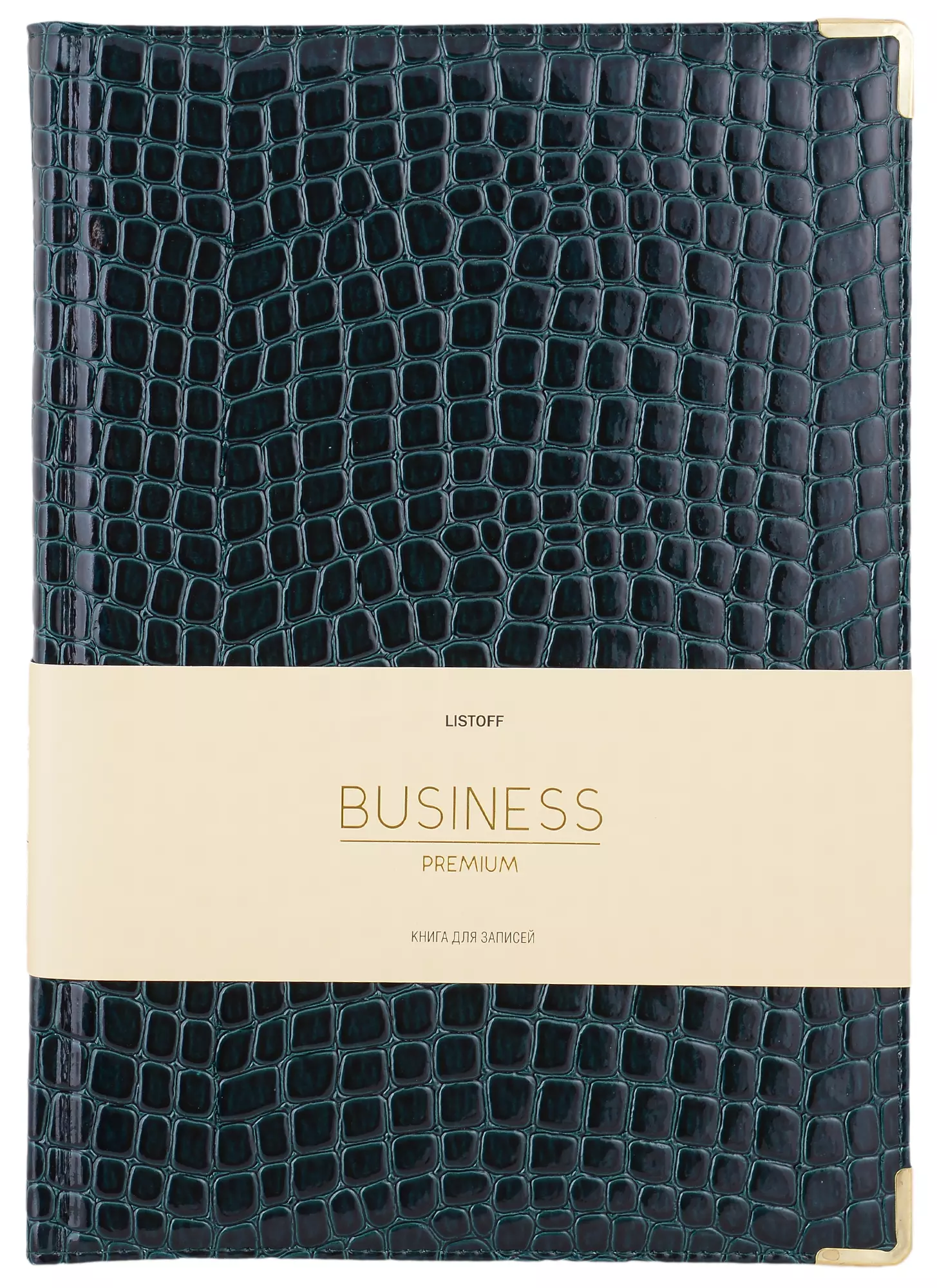 Книга для записей А4 100л кл. "BUSINESS PREMIUM. Iguana (изумрудный)" иск.кожа, поролон, мет.уголки, тонир.блок. зол.торец, 2 ляссе, инд.уп.