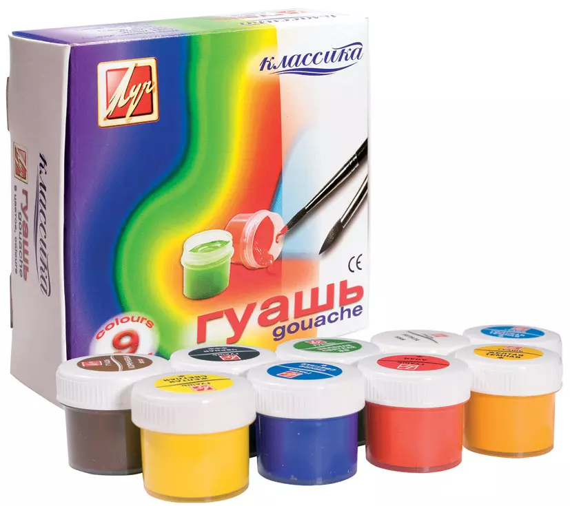 Главная » Мир литературы Краски гуашевые 9 цветов 20мл "Классика" Просмотров 13 Краски гуашевые 9 цветов 20мл "Классика" картонная коробка, без кистей, Луч