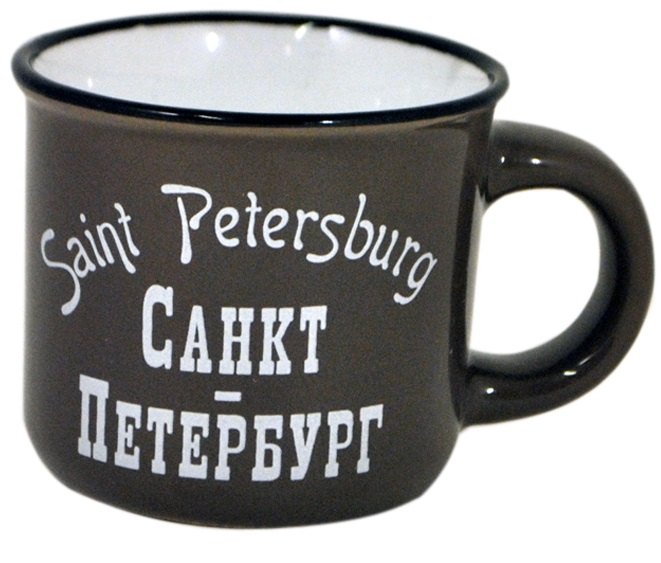 Кружка Санкт-Петербург коричневый фон, керамика, h=5,5см d=6,2см, 0.09л. без коробки