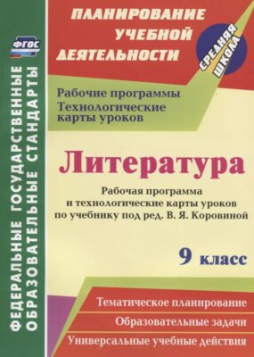 В пособии представлены рабочая программа и технологические карты уроков по литературе для 9 класса, разработанные в соответствии с основными положениями ФГОС ООО и ориентированные на работу по учебнику В. Я. Коровиной, В. П. Журавлева, В. И. Коровина, И. С. Збарского; под ред. В. Я. Коровиной (М.: Просвещение, 2016). Программа содержит развернутое календарно-тематическое планирование системы уроков. В картах уроков обозначены предметные и личностные результаты, метапредметные УУД, сформулированы педагогические цели, предложены традиционные и инновационные формы деятельности, способствующие развитию познавательной активности, коммуникативных умений, позволяющие осуществлять регулятивно-оценочные функции, находить пути решения учебно-практических задач. Предназначено руководителям методических объединений, учителям русского языка и литературы образовательных организаций; рекомендовано студентам педагогических вузов.