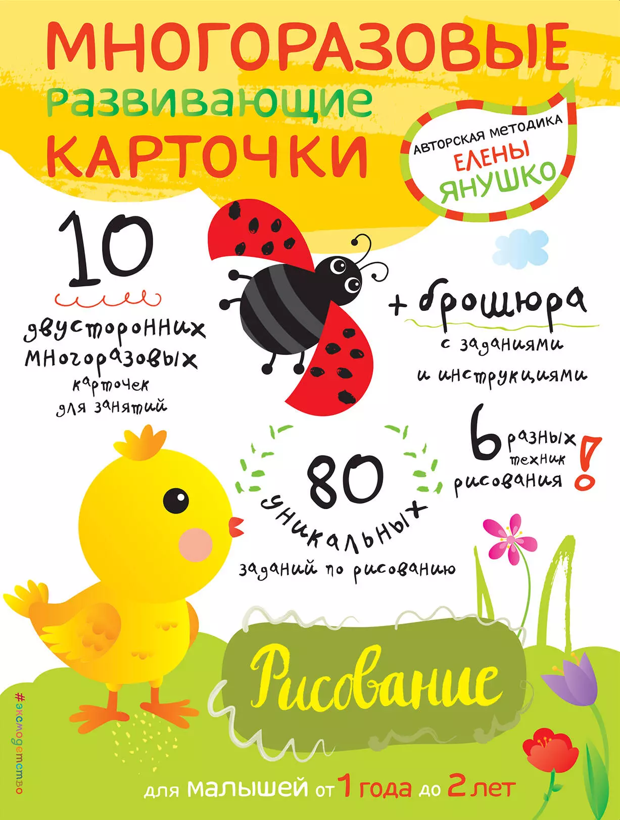 На каждой стороне многоразовой каточки вы найдете яркую интересную картинку–основу для выполнения задания, а также четыре разноплановые задания в разных техниках рисования. 80 игровых заданий рассчитаны на целый год занятий!