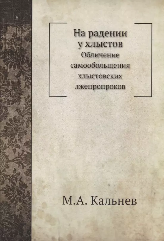 Сочинение миссионера М. Кальнева. Издание 1. В книге рассказывается о том, как православный миссионер инкогнито посетил молитвенное собрание хлыстов. Воспроизведено в оригинальной авторской орфографии издания 1902 года