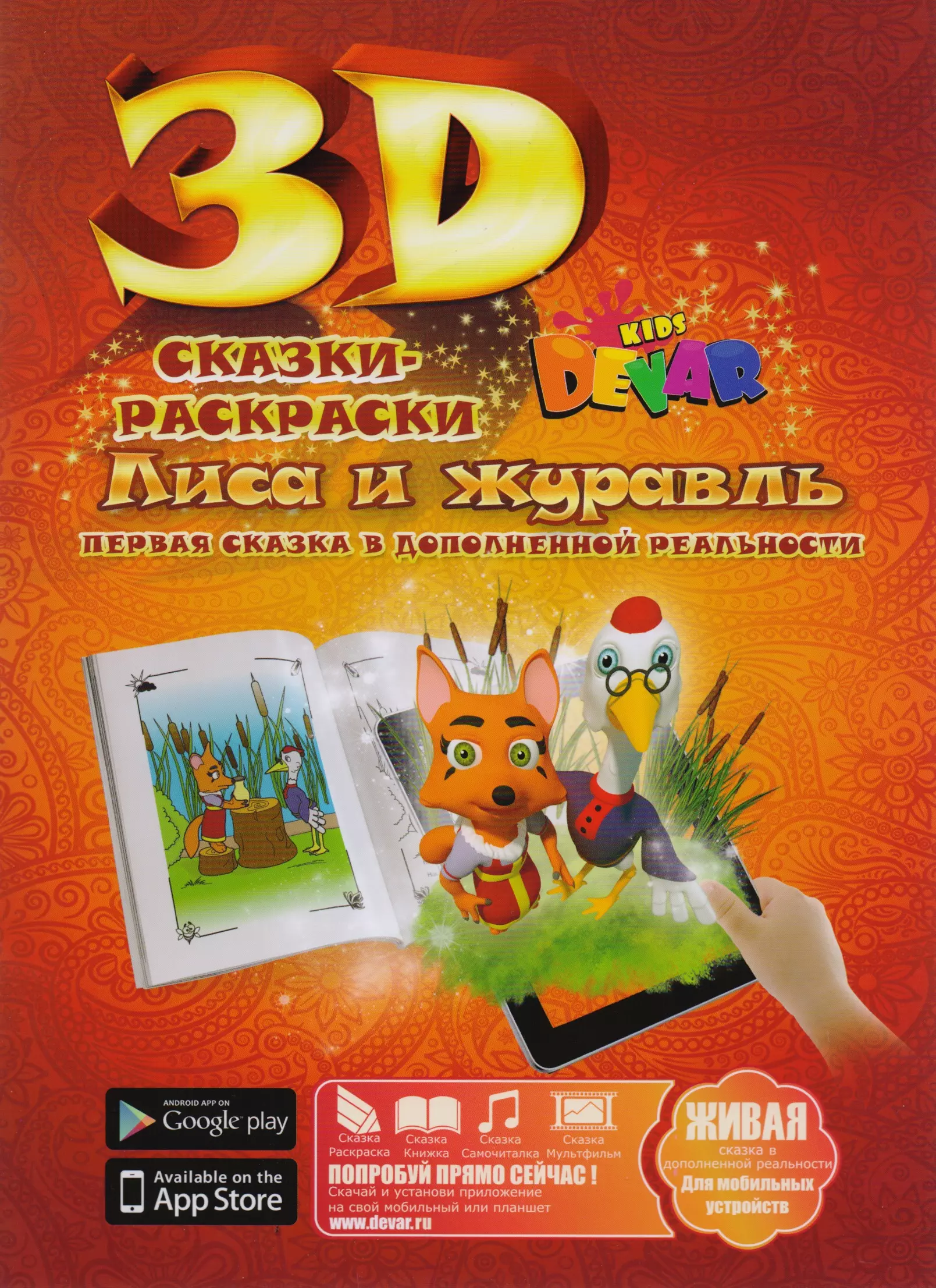 Сказка-раскраска представляет собой раскраску по мотивам одноименной русской народной сказки. В книге имеются как заранее раскрашенные страницы, так и те, которые необходимо раскрасить. Иллюстрации сопровождаются текстом сказки. Первая раскраска с дополненной реальностью! Шаг 1: раскрась страницы. Шаг 2: скачай бесплатное приложение DEVAR kids Шаг 3: Наведи телефон или планшет на страницу. Шаг 4: Смотри как персонажи оживают! Для младшего школьного возраста.