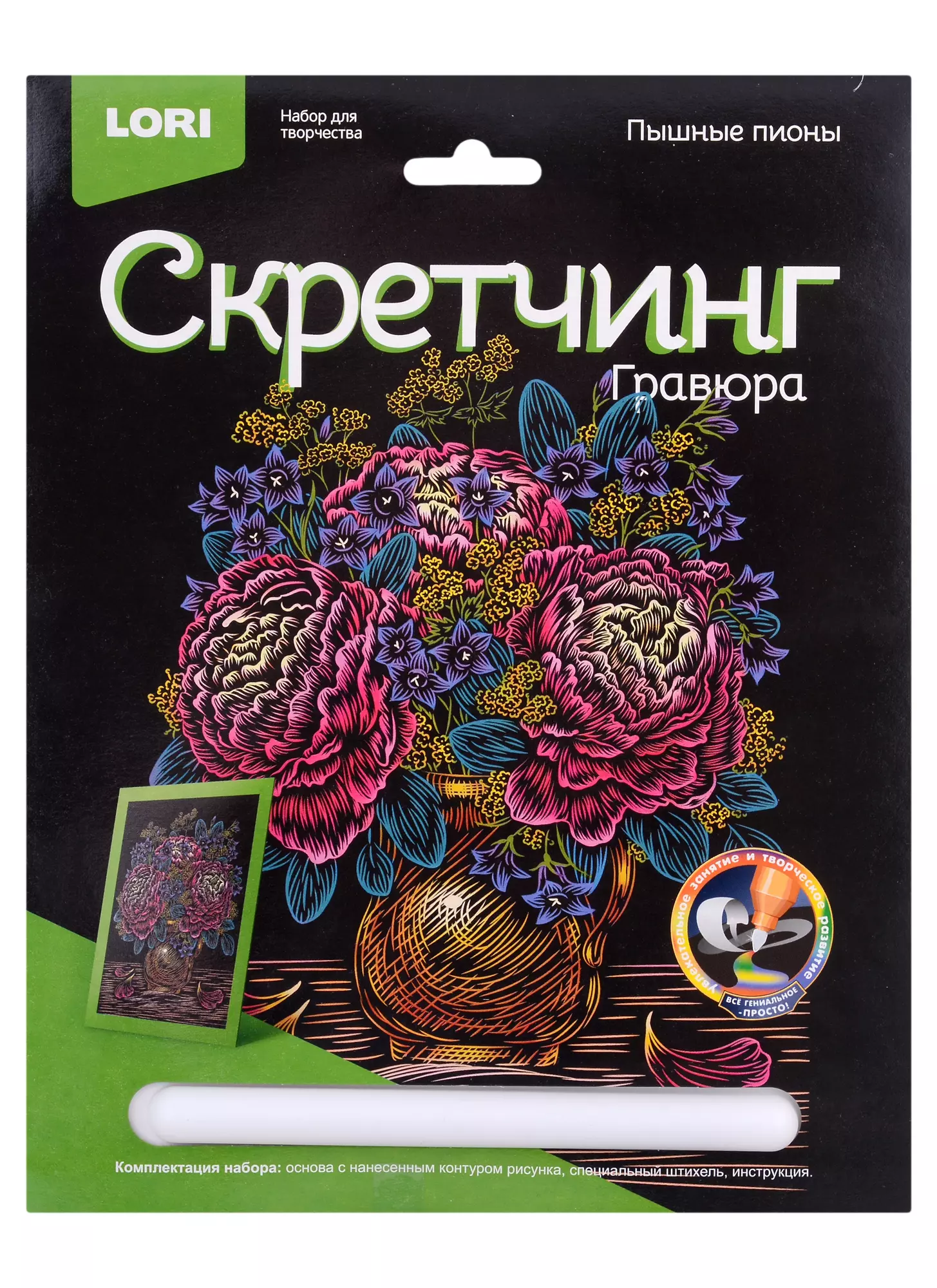 Набор для творчества LORI Скретчинг Гравюра цветная Цветы "Пышные пионы"