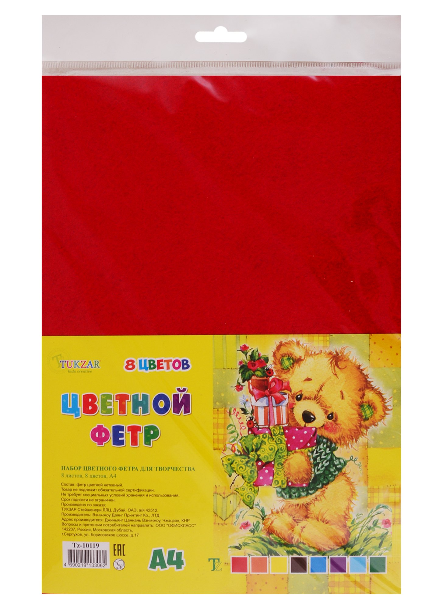 Набор для творчества, Tukzar, Набор цветного фетра А4 8 листов, 8 цветов