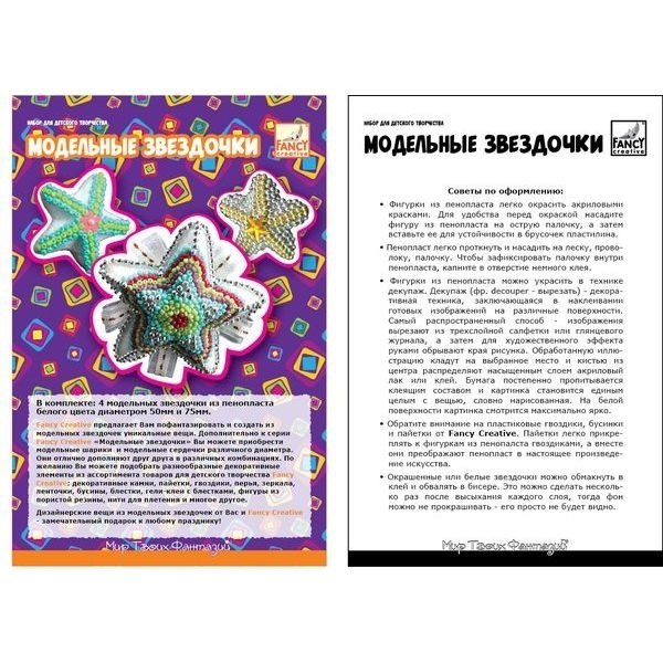 Главная » Мир литературы Набор звездочек из пенопласта (FD030014) (d=50мм,d=75мм) (4шт) (упаковка) Просмотров 9 Набор звездочек из пенопласта, d=50мм, d=75мм; предназначен для декорирования.