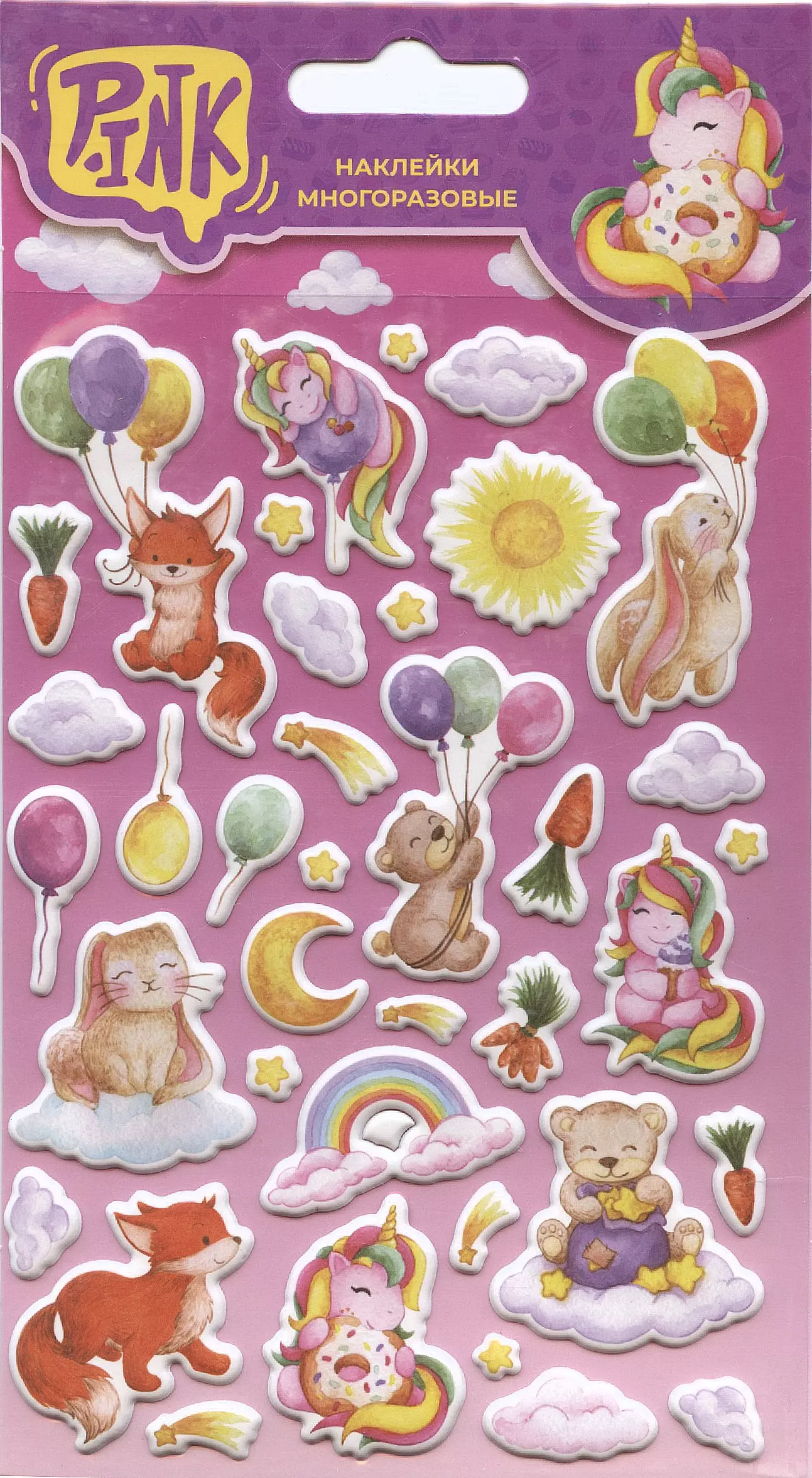 Наклейки объемные "Зверята и шарики"