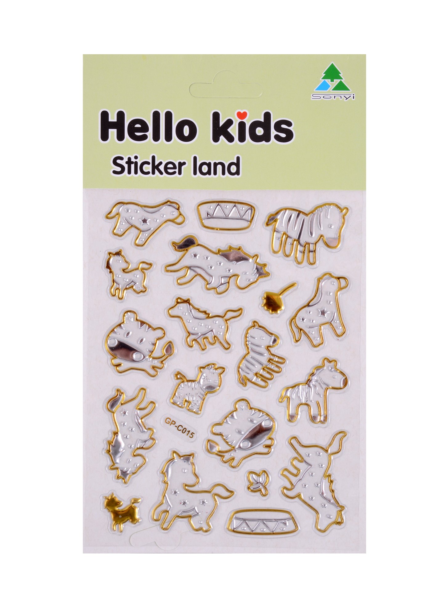 Наклейки с обводкой Зебры и Единороги серебро, золото, 13 х 21,7 см PVC