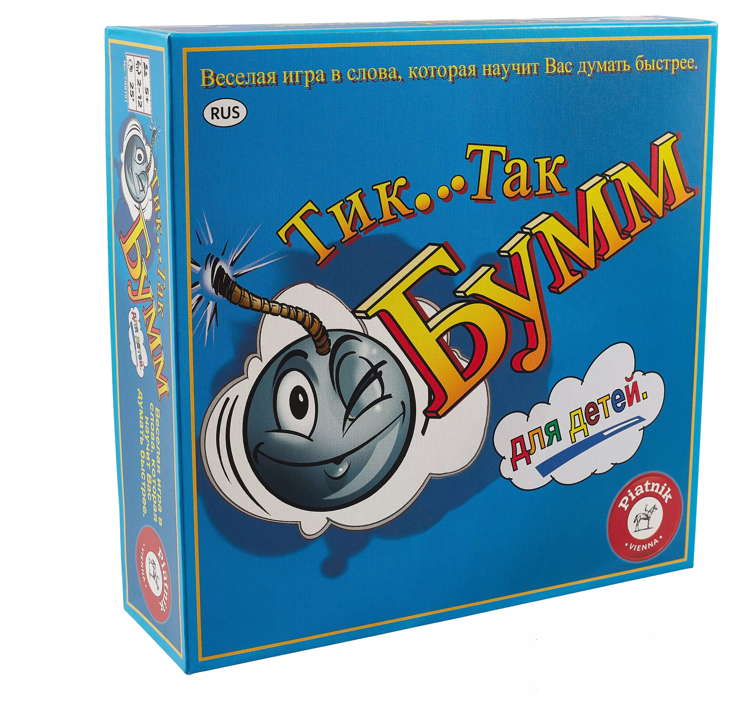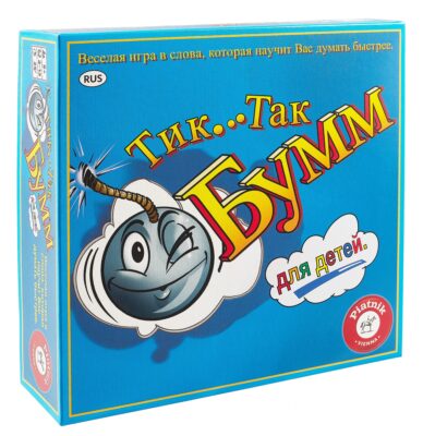 Настольная игра «Тик Так Бумм» для детей – это очень увлекательная игра, в которую могут играть одновременно от двух до двенадцати человек. Перед игрой нужно перемешать карточки и сложить их в колоду. Ребенку необходимо быстро придумать слово, которое имеет отношение к тому, что подписано под картинкой. Во время игры через всех игроков переходит "бомба-игрушка". Если игрок задумается надолго, то она может взорваться и вы услышите громкий хлопок. Если это случиться, то карточку придется забрать тому, у кого в руках оказалась "бомба". Победит тот, кто меньше всех взрывался во время игры. Для победы вам, конечно же, понадобится чувство юмора, немного фантазии и везение! Эта игра подарит чудесные и веселые моменты каждому игроку! Игра продается в красочной коробке из плотного картона.В комплект входят: 55 карт, бомбочка таймер (без батареек), правила игры. Для бомбочки нужны две батарейки ААА (в комплект не входят). Рекомендуемый возраст: старше 5 лет.