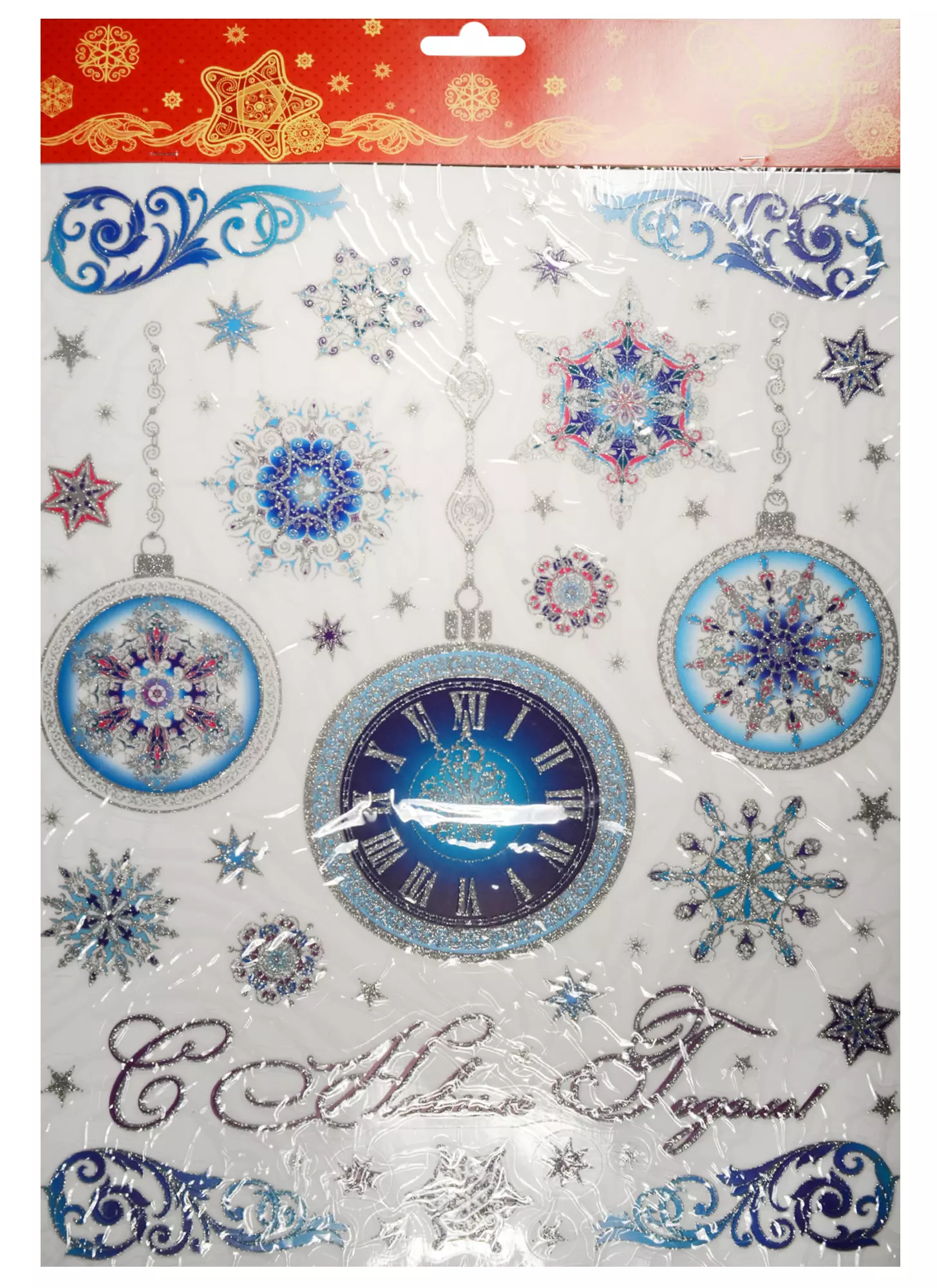 Новогоднее оконное украшение "ЕЛОЧНЫЕ ШАРЫ" поможет украсить дом к предстоящим праздникам. На одном листе расположены наклейки в виде шаров и снежинок, декорированные блестками и глиттером. Оконное украшение изготовлено из ПВХ пленки, размер 30*38см. Можно наклеить на окно, зеркало. После снятия не оставляет следов на поверхности.