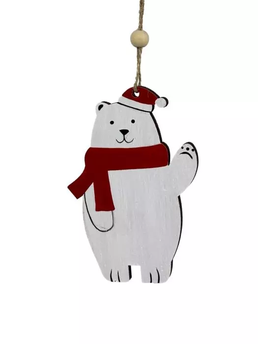 Новогоднее подвесное украшение Мишка в шарфике (11х9) (дерево)