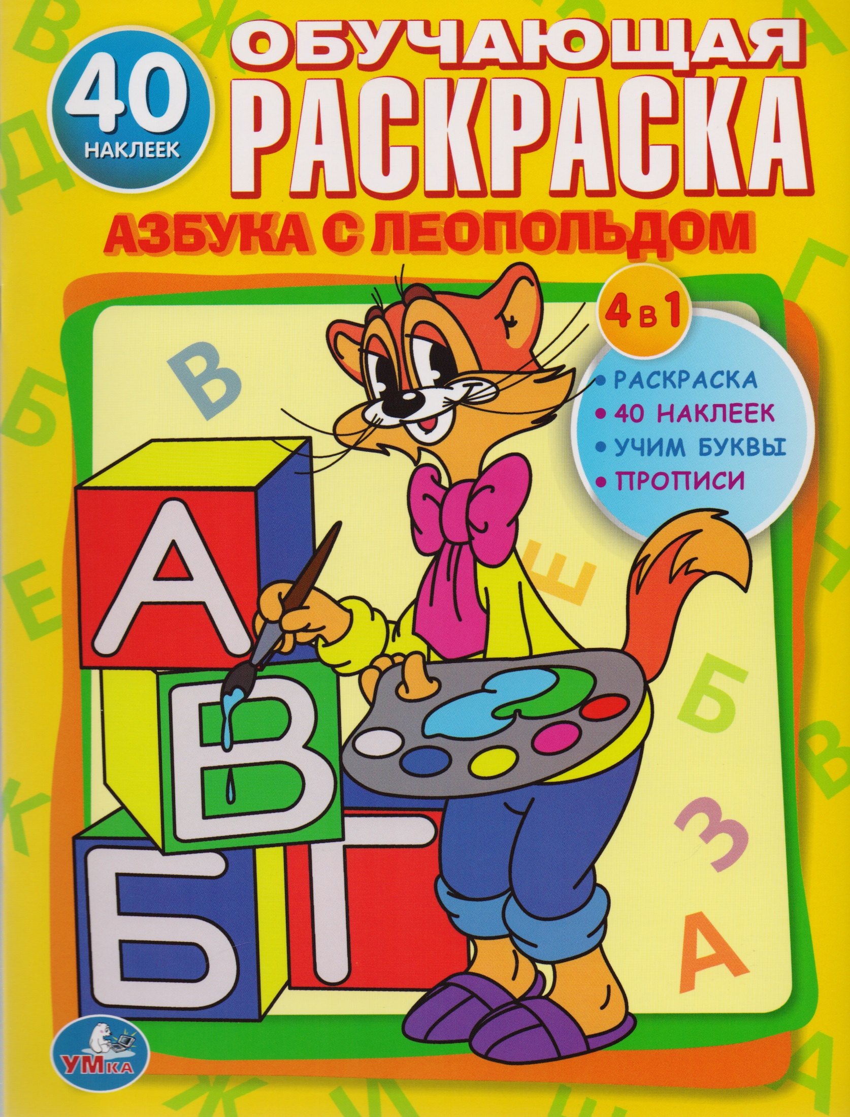 Эта занимательная раскраска с наклейками поможет малышу не только узнать буквы и подготовить руку к письму. Раскрашивая героев любимых мультфильмов, ребенок закрепит знания в цвете и форме предметов. А яркие наклейки помогут ему быстрее запомнить алфавит.