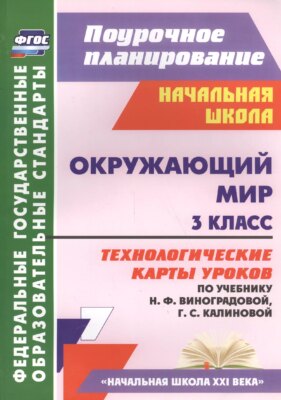 В пособии представлены технологические карты уроков по окружающему миру для 3 класса, разработанные в соответствии с ФГОС НОО и ориентированные на работу с учебником Н.Ф. Виноградовой, Г.С. Калиновой (М.: Вентана-Граф, 2014), входящим в УМК "Начальная школа XXI века".Технологические карты уроков отражают современные виды и формы деятельности, способствующие развитию познавательной активности и коммуникативной компетенции, побуждающие обучающихся осуществлять регулятивно-оценочные функции, формулировать учебно-практические задачи и находить пути их решения. Предназначено учителям начальных классов, руководителям методических объединений.