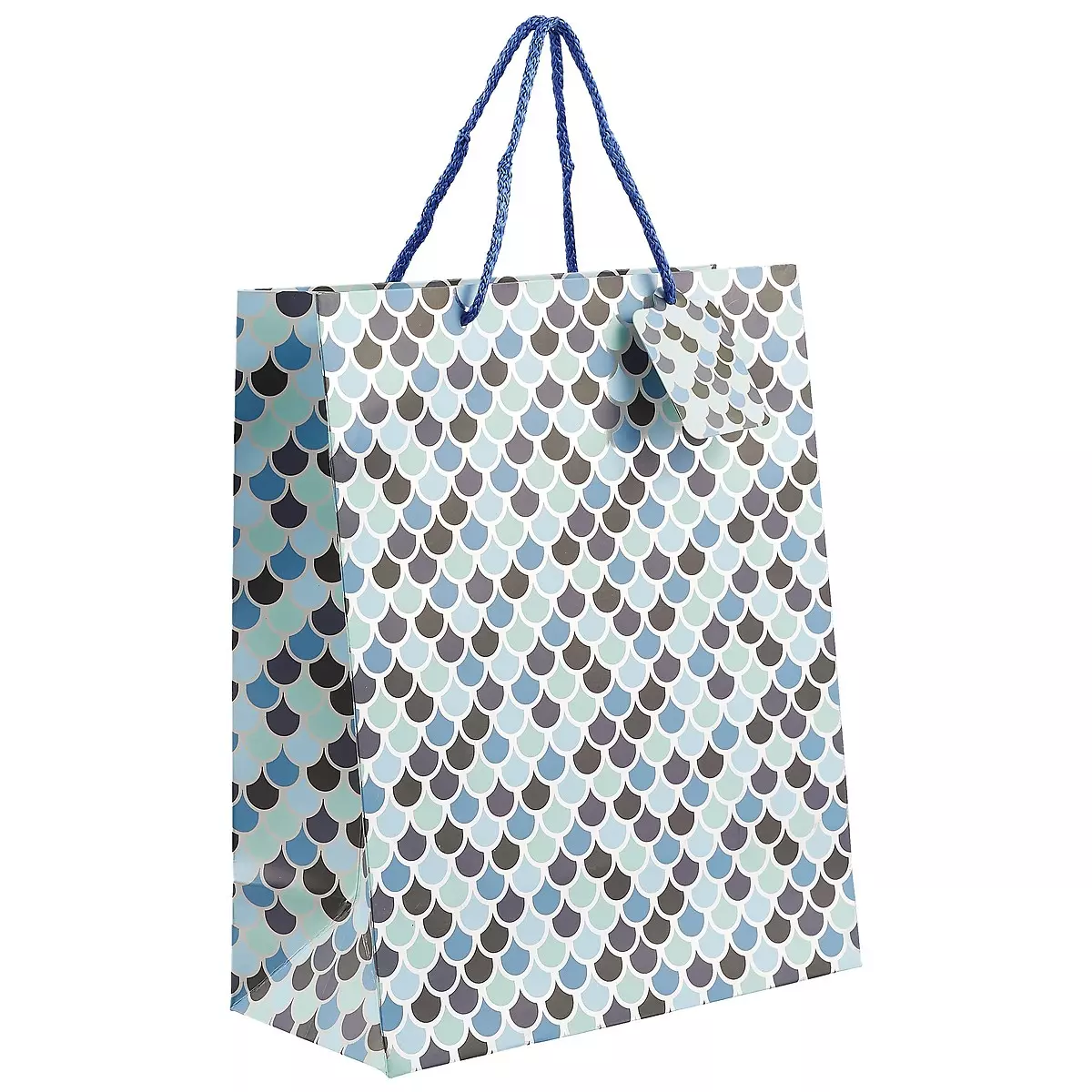 Пакет А4 32*26*12,5 "Blue fish-scale" женск, тиснение фольгой, бум.мат.ламинат