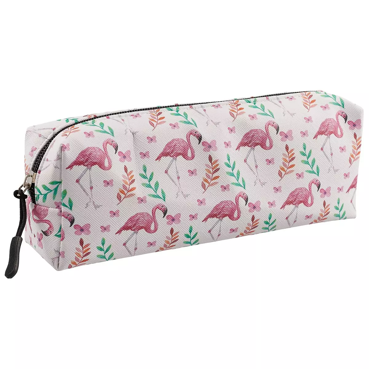 Пенал украшен принтом в виде фламинго и экзотических растений, которые будут напоминать вам о летних каникулах круглый год.