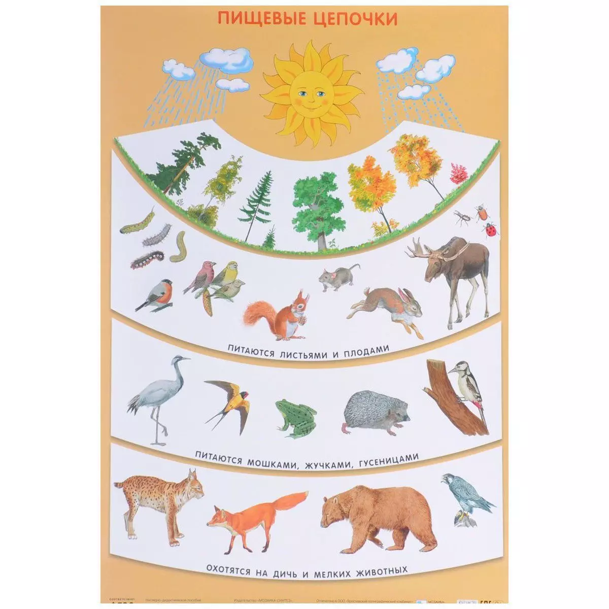 Плакат большого формата "Пищевые цепочки" издан в рамках учебно-методического комплекта к парциальной программе С.Н. Николаевой "Юный эколог". Плакат познакомит детей с одной из пищевых цепочек, участники которой хорошо известны дошкольникам. Великолепные красочные иллюстрации обязательно заинтересуют ребят и помогут легко усвоить новые знания.