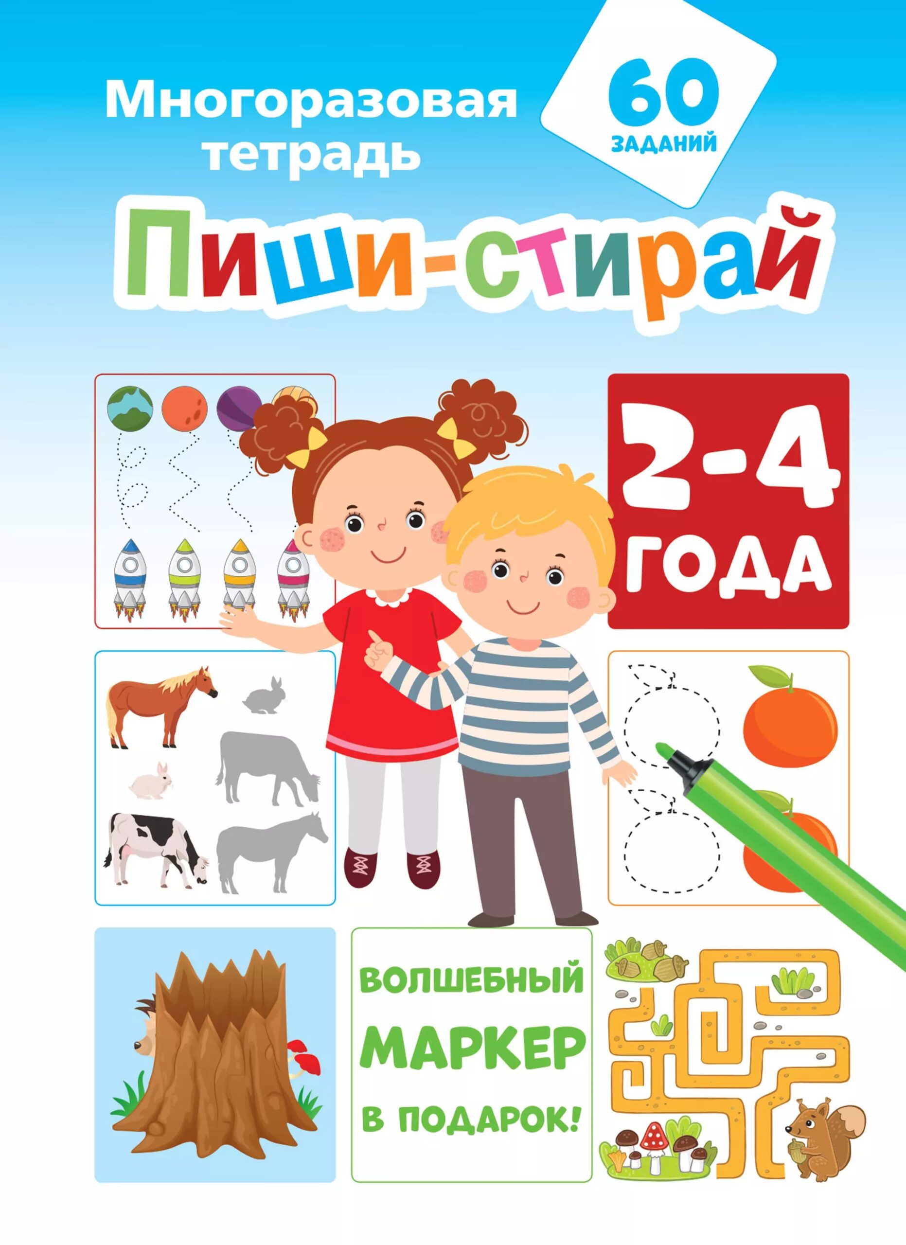 "Пиши-стирай. 2-4 года" — это волшебная многоразовая развивающая рабочая тетрадь. Пиши и стирай, сколько хочешь!• 36 ламинированных страничек• 60 заданий, которые хочется выполнять снова и снова• Волшебный маркер в подарок• Идеально для малышей 2-4 лет.Познаем мир без страха ошибиться!Развиваем речь, логику и внимание, навыки счета и письма, воображение и эмоциональный интеллект, мелкую моторику и зрительное восприятие.И всё это — много-много раз!