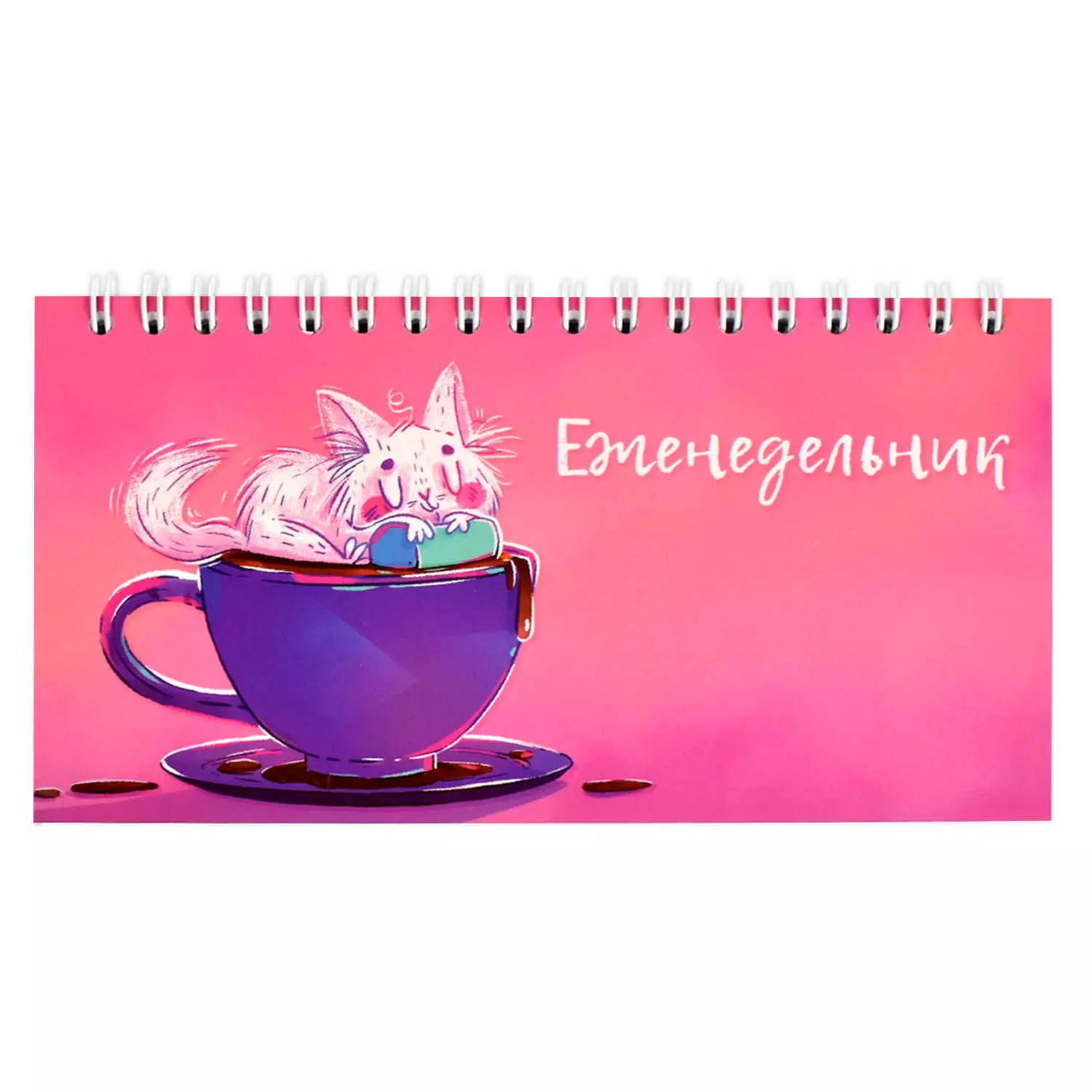 Планинг недат. 165х85 64 л "ЧАШКА С КОШКОЙ" карманный, мягк.переплет, мат.ламинация, выб.УФ-лак, офсет