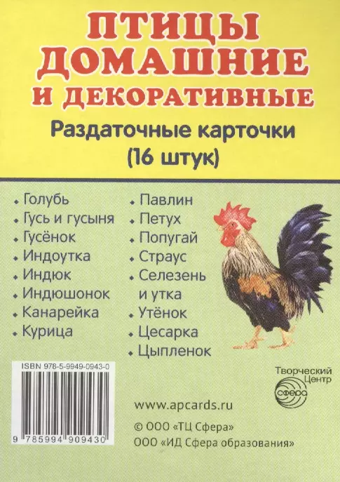 Птицы домашние и декоративные. 16 раздаточных карточек с текстом