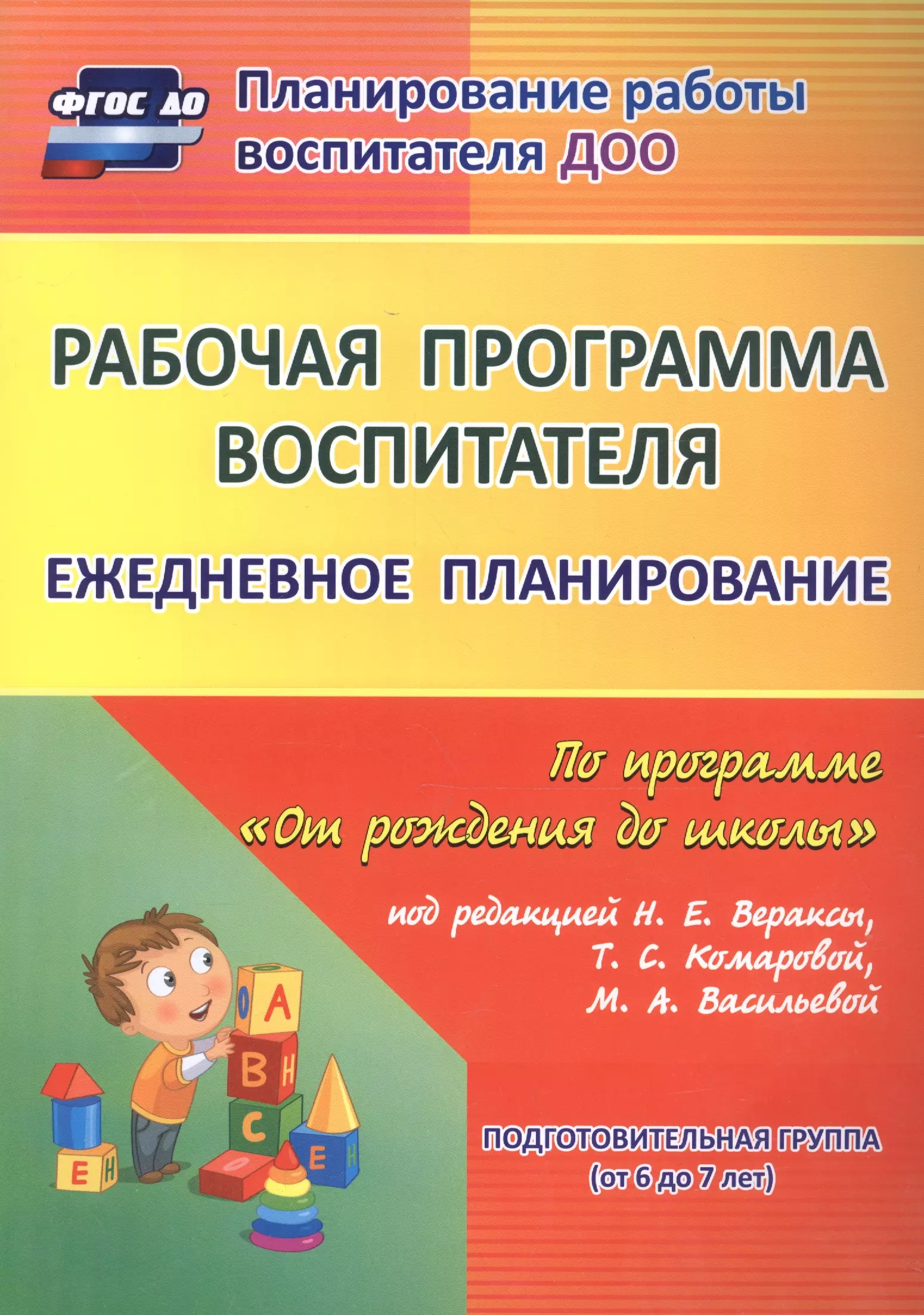 В пособии представлена модель рабочей программы деятельности воспитателя, разработанная в соответствии с ФГОС ДО по программе дошкольного образования "От рождения до школы" под редакцией Н. Е. Вераксы, Т. С. Комаровой, М. А. Васильевой (М.: Мозаика-Синтез) для подготовительной группы (от 6 до 7 лет), охватывающая весь комплекс содержания и организации жизни и воспитания детей в условиях ДОО, планирование культурно-досуговой, совместной деятельности воспитателя и дошколят, взаимодействия с семьями воспитанников. Предложена карта профессиональной компетентности воспитателя, включающая план саморазвития, самообразования, копилку достижений, самодиагностику, составленная в рамках задач ФГОС дошкольного образования и в контексте Профессионального стандарта педагога. Удобное табличное размещение материала позволяет педагогу дополнить основную часть программы вариативными компонентами и обеспечить целостность и системность психолого-педагогического сопровождения, успешность каждого ребенка в течение всего пребывания в детском саду. Предназначено руководителям и педагогам дошкольных образовательных организаций; рекомендовано специалистам дошкольной педагогики, студентам высших и средних педагогических учебных заведений.