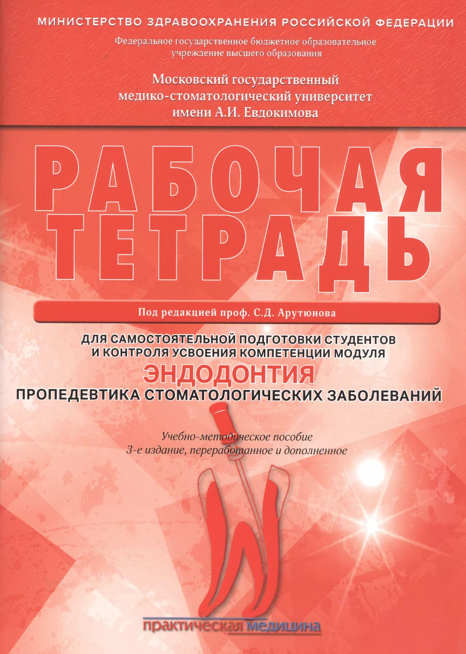 Рабочая тетрадь "Эндодонтия. Пропедевтика стоматологических заболеваний", третье издание, переработанное и дополненное, представляет собой сборник заданий, предназначенных для повышения качества подготовки студентов и приобретения ими базовых знаний модуля "Эндодонтия" учебной дисциплины "Пропедевтика стоматологических заболеваний". Авторы основывались на научных и методологических принципах, заложенных в Федеральном государственном образовательном стандарте высшего образования по направлению подготовки 31.05.03 "Стоматология (уровень специалиста)". В учебно-методическом пособии задания иллюстрированы рисунками, которые отражают основные понятия эндодонтии, морфологии зуба, доступ к пульпарной полости и каналам корней, перечень и технику применения эндодонтического инструментария, этапы подготовки корневых каналов к обтурации (пломбированию). В издание включены вопросы и тестовые задания для самоконтроля освоения материала.Предназначено в качестве учебного наглядного издания для студентов стоматологических факультетов медицинских вузов.