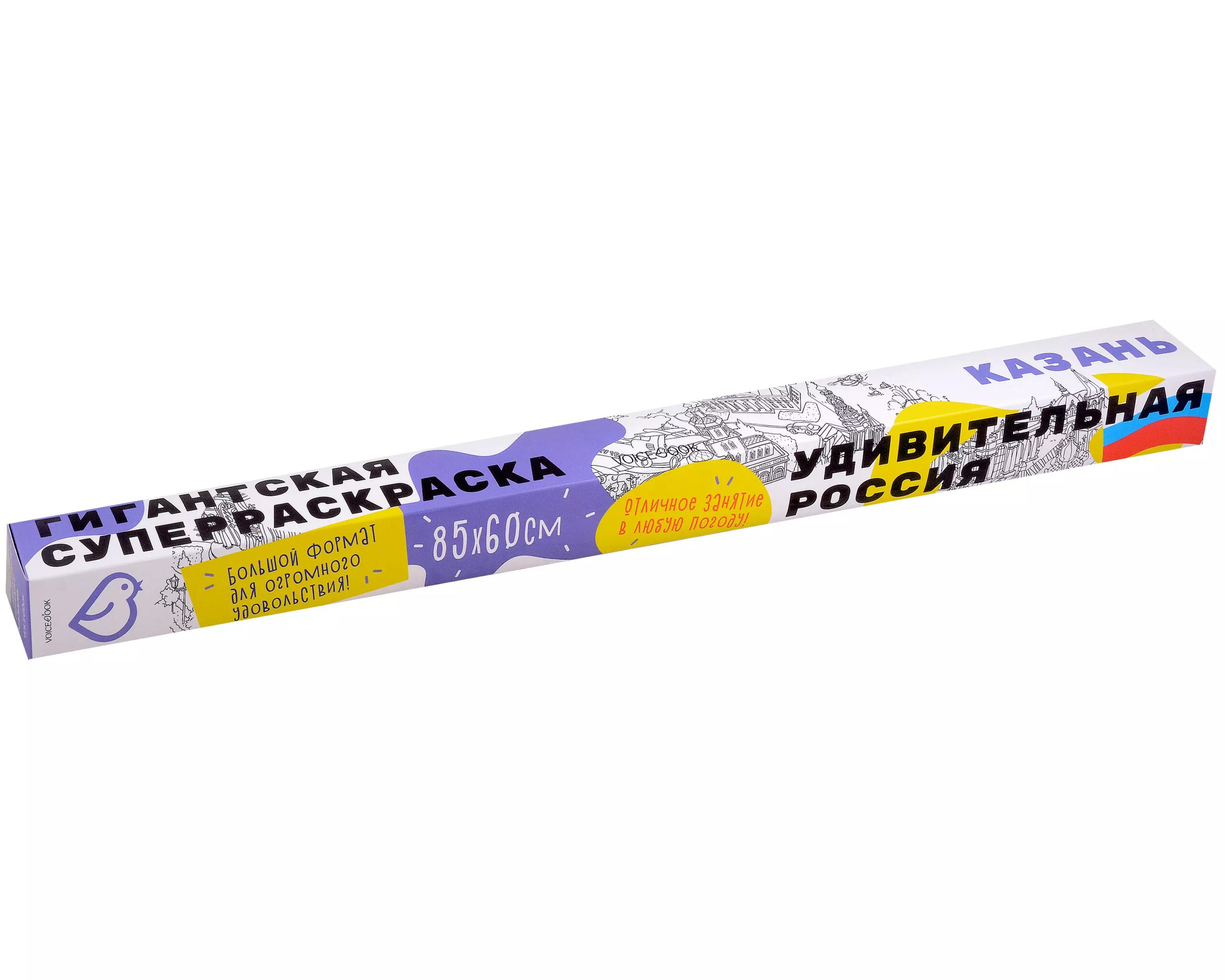 Раскраска «Казань» знакомит ребенка с ярким, восточным колоритом одного из самых красивых городов России. На гигантском рисованном полотне можно найти великолепный казанский Кремль и бело-голубую мечеть Кул-Шариф, изгибы великой реки Волги и озера вокруг Казани, где сегодня тренируются атлеты.Раскраска выходит в серии «Удивительная Россия», которая знакомит ребенка с богатством и разнообразием городов и регионов страны в игровой форме. Разукрашивая храмы и другие красоты Казани, ребенок может узнать больше о географии страны и ее достопримечательностях. На каждой коробке есть краткая информация про основные достопримечательности, изображенные на раскраске, чтобы ребенок мог познакомиться с главными приметами города или региона не только на картинке.