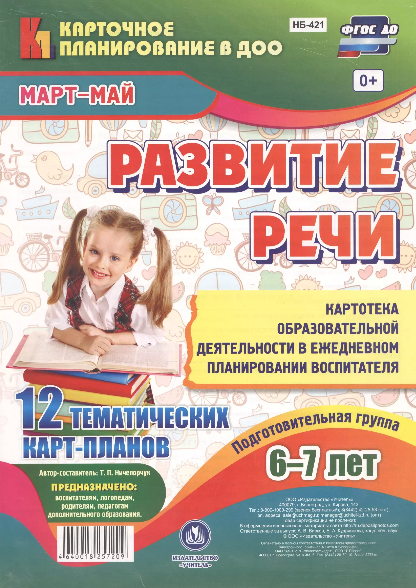 Предложенный набор табличных форм планирования совместной образовательной деятельности облегчит педагогам процесс заполнения документации и поможет воспитателям подобрать игровые средства по развитию речевых и практических умений детей дошкольного возраста. Картотека плана по развитию речи — это система образования детей дошкольного возраста в ежедневной практике воспитателя в любые режимные моменты в течении дня с помощью игровых занятий, упражнений по формированию речевых умений и обогащению речевого опыта. В тематических картах показано, как необходимо планировать ежедневную совместную образовательную работу по развитию речи дошкольника в игровой форме в течении дня (в первую и вторую половину дня) в соответствии с ФГОС ДО по направлениям:.- Развитие слухового и зрительного внимания и восприятия;.- Развитие просодической стороны речи, воспитание общих речевых навыков;.- Формирование и совершенствование лексического состава языка;.- Развитие импрессивной речи;.- Развитие экспрессивной речи;.- Формирование и совершенствование грамматического строя речи;.- Развитие речевого общения, связной речи. Картотека включает артикуляционные упражнения, пальчиковую гимнастику, игры на координацию речи с движением, игры на формирование словаря, грамматического строя речи, связной речи. Предназначено воспитателям, логопедам, родителям, педагогам дополнительного образования.