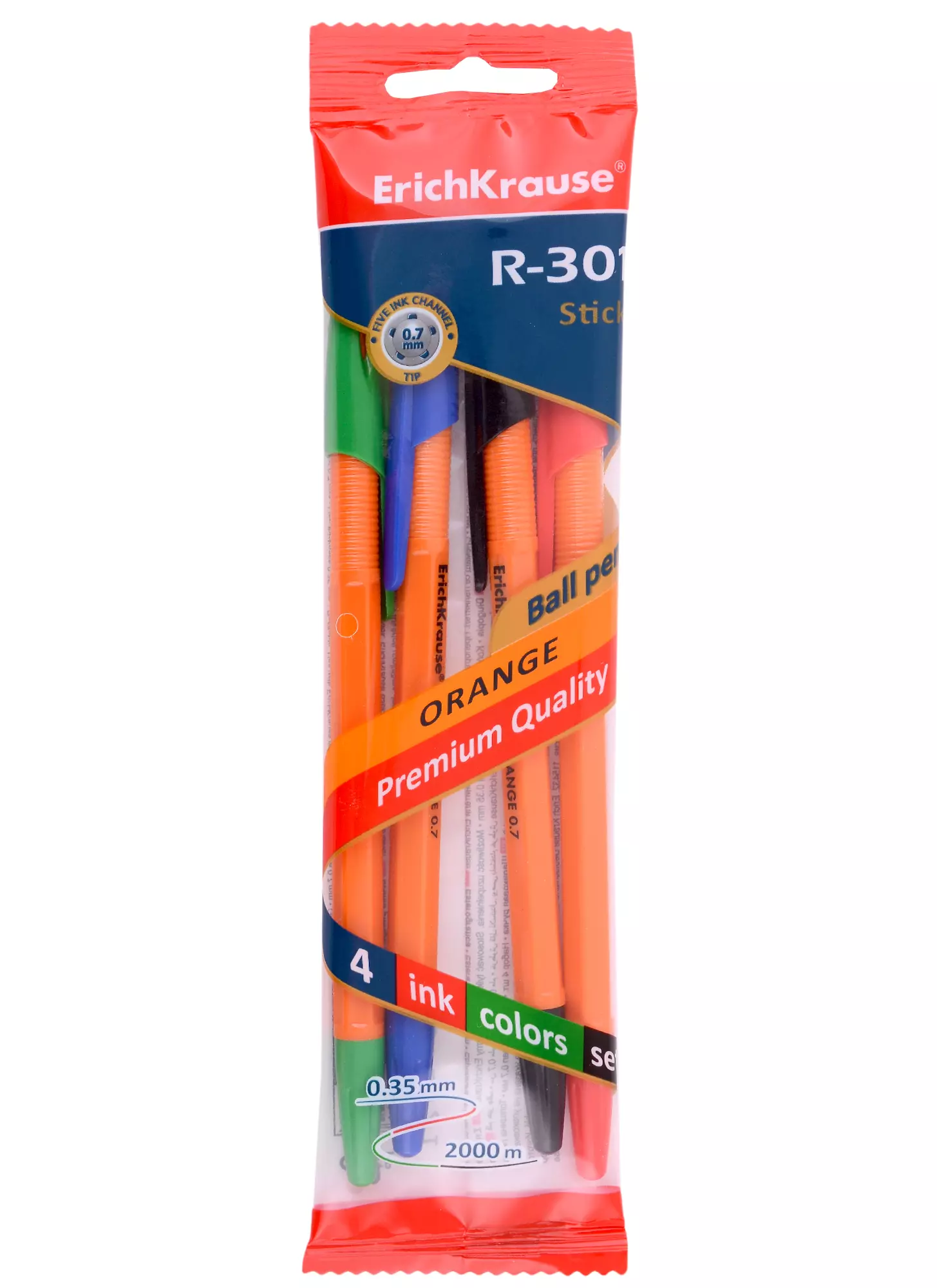 Ручки шариковые Erich Krause, R-301 Orange Stick, 4 цвета 0,7 мм