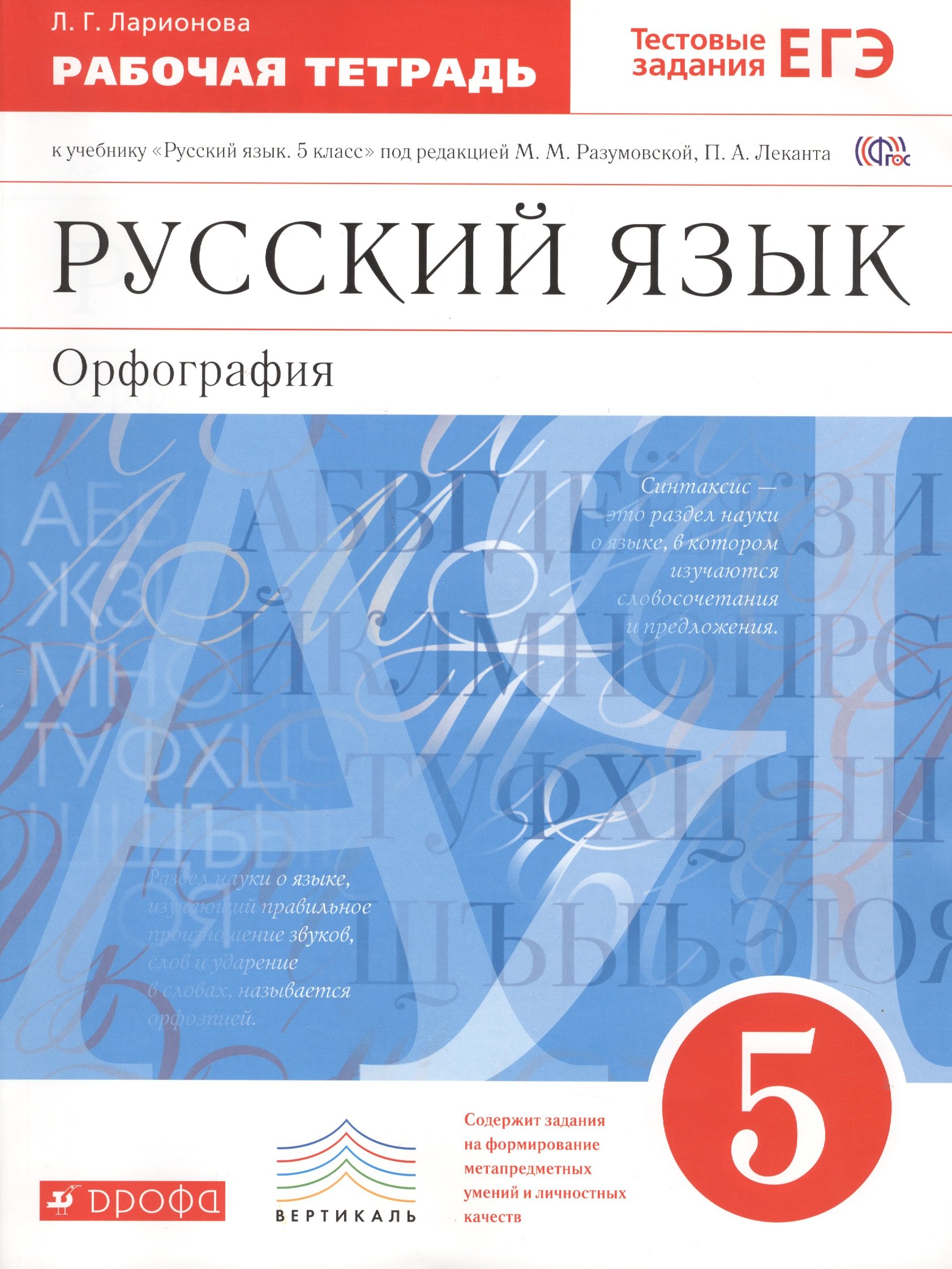 Рабочая тетрадь предназначена для закрепления и проверки знаний учеников по орфографии. Содержит задания, направленные на совершенствование умений осмысливать и понимать чужое высказывание, свободно и правильно выражать собственные мысли в устной и письменной речи с учетом разных ситуаций общения и в соответствии с нормами литературного языка.