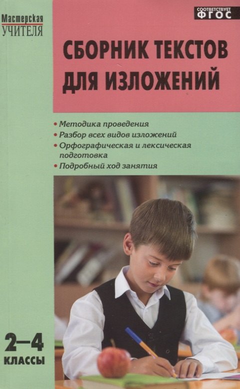 Сборник содержит тексты изложений по русскому языку для учащихся 2–4 классов, сгруппированные в порядке изучения программных тем. К текстам прилагаются вопросы по содержанию, примерные планы изложений и задания для словарной работы и орфографической подготовки. Сборник составлен в соответствии с требованиями ФГОС.