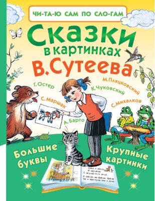 "Сказки в картинках В. Сутеева" — это сборник произведений писателей-классиков, которые любят и знают не только мамы и папы, но и бабушки и дедушки малышей. Кто же не помнит усатого-полосатого котёнка С. Маршака, упрямого Лягушонка С. Михалкова, Мойдодыра К. Чуковского, котёнка по имени Гав Г. Остера, медвежонка-невежу А. Барто и других знаменитых героев детской литературы. Теперь и ваши малыши смогут сами прочитать и подружиться с этими героями, ведь в этой книге для самостоятельного чтения большие буквы и все слова разбиты на слоги с ударениями. А все картинки в книге нарисованы мастером детской иллюстрации В. Сутеевым, картинки которого любят и дети, и взрослые.