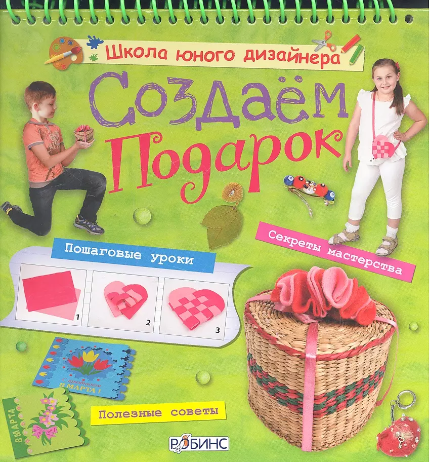 Подарок своими руками. Что может быть оригинальнее и ценнее. Всегда приятно получить в подарок не просто на бегу купленную вещь, а маленькое произведение искусства, в которое человек вложил часть своей души. В книге "Создаём подарок" множество оригинальных идей и мастер-классов, как сделать красивый, неповторимый подарок своими руками. Конструкция в виде книжки-домика на магните сделает творческий процесс веселым и удобным: листочки не будут закрываться, а сама книжка — переворачиваться! На страницы нанесено специальное моющееся покрытие, которое не позволит страницам книги испачкаться. Делать красивые, ценные подарки — это искусство. Давайте вместе учиться, как делать маленькие чудеса.